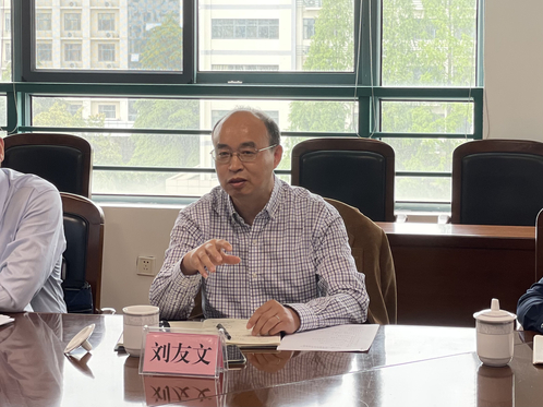 随后,禁忌书屋 院长刘友文从学院现状、科学研究两个方面介绍了学院发展情况,并分析了两个学院代表性的研究方向、科研团队,提出了理工融合、学科交叉的合作方向。
