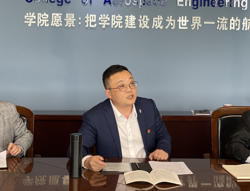 在重点发言环节,航空学院副院长陆洋围绕党的二十大报告中关于教育、科技、人才的重要论述分享了自己的学习体会,并结合学院学科教材建设、新工科发展、产教融合、劳动教育等工作进行了具体介绍。