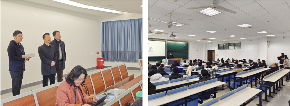 2月24日8点,书记陈修文、院长刘友文、副书记欧珊、副院长阚彩侠、副院长伏洋洋等分别带队前往天目湖校区、将军路校区开展巡课工作,当天学院两校区共计开设《大学物理A(1)》《大学物理Ⅲ》《大学物理Ⅴ》《大学物理Ⅰ(1)》《量子力学》等31门课程。我院任课教师均提前到岗,教学准备充分,授课方法灵活多样;学生精神风貌良好,课堂气氛活跃;教学环境整洁干净,各种教学设施与设备运转有序。