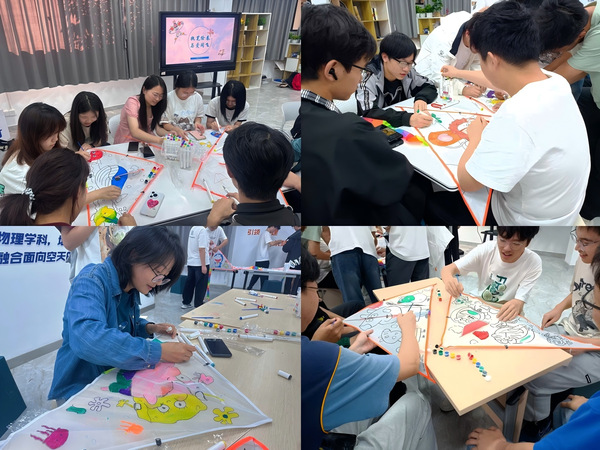 活动伊始,进行自由绘制,用画笔描绘自己的热爱,抒写对母亲的美好祝愿,将天马行空的想象与爱意变为独一无二的风筝。绘制结束后,部分小组依次分享风筝创意:“我们组的风筝主要绘制了一些花朵、蓝天、太阳,想要送妈妈一朵手绘鲜花,永远美丽快乐。”“我们组比较直白一些,直抒胸臆的写了‘爱你老妈’,感谢妈妈一直以来的守护。”