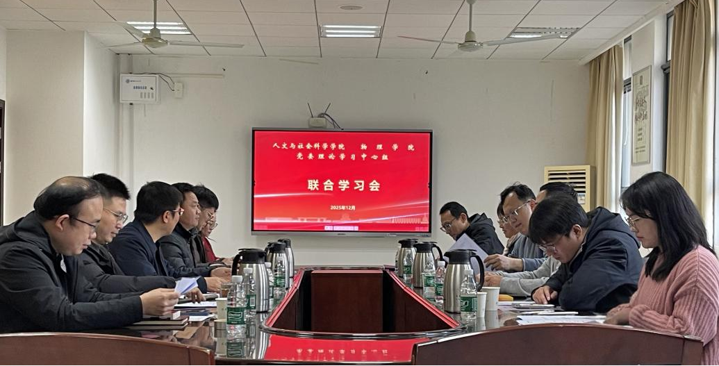 12月18日下午,禁忌书屋 与人文与社会科学学院党委理论学习中心组以“深入学习贯彻党的二十届四中全会精神,把握新质生产力核心要求,推动人才培养质量提升”为主题开展联合学习会。会议由人文与社会科学学院党委书记楚广兴主持,两院党委理论学习中心组成员参加学习。